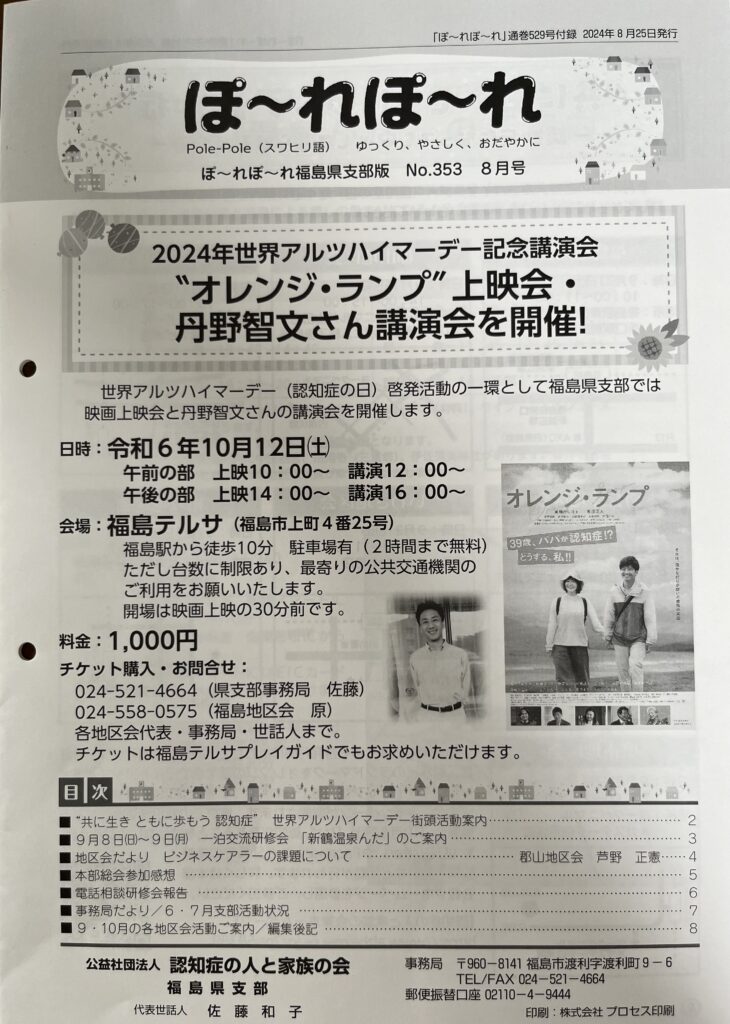 認知症の人と家族の会福島県支部では映画『オレンジ・ランプ』上映会と記念講演会を開催します。